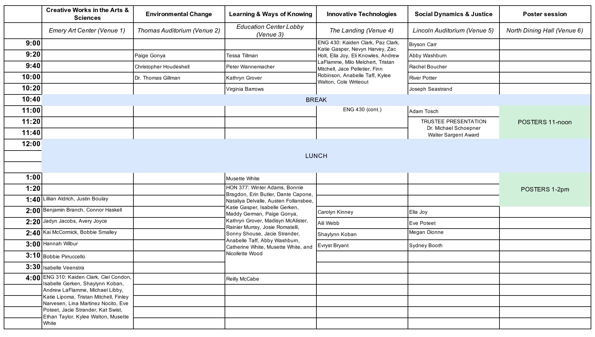 Each year, the University of Maine at Farmington (UMF) Symposium showcases the academic excellence, research, creative work, and experiential learning of our students. Students present both individual and course-based projects representing diverse academic disciplines. Through lectures, demonstrations, performances, and interactive poster sessions, they share original research findings, thoughtful analysis, and creative work with the community. All events are open to the public.